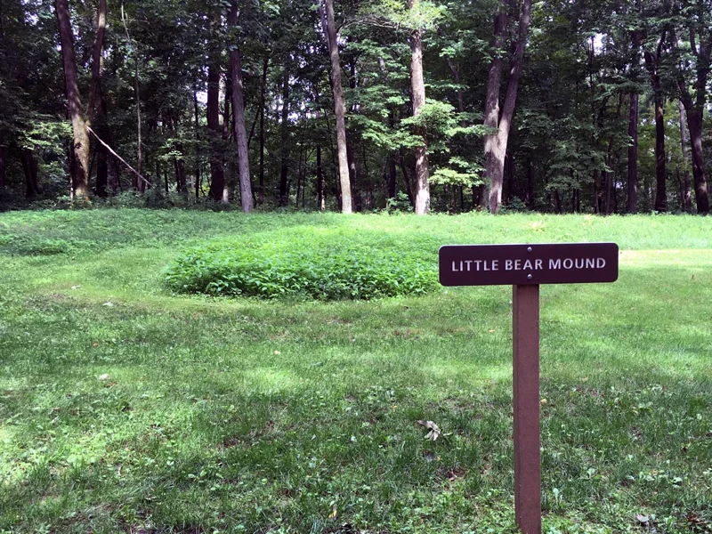 Most images of the mounds are shown from the air, outlined in white chalk in the winter, through leafless trees, or black and white drawings made by surveyor/explorers. When you are standing next to them, you can’t see the whole thing. You know it is a bear because of the sign and the images you have seen. But it really looks like a slight rise covered in tall weeds. If the park didn’t mow the grass around them, you wouldn’t be able to distinguish them from the rest of the hilly ground. I tried to hold on to a sense of awe, but it was fading.